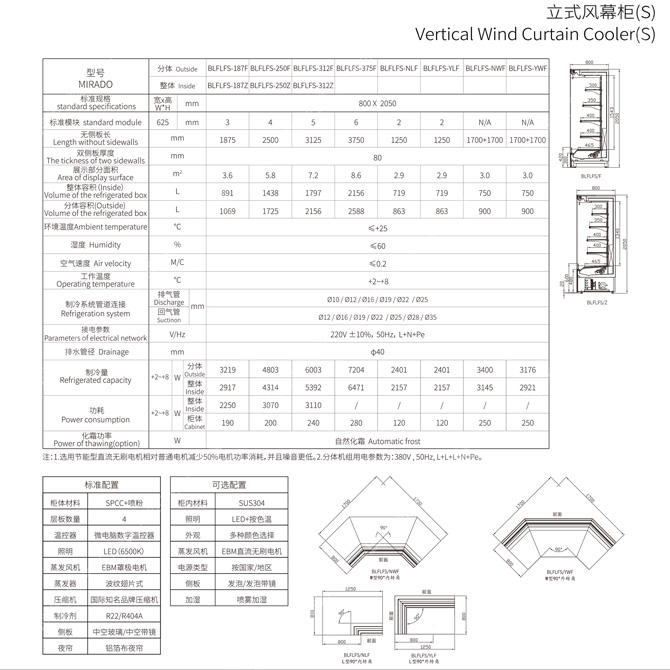 产品特色:立式标准设计、美观大方;铝箔布夜帘更节能;LED微电脑数字温控计;低色温(6500k)照明系统;Ebmpapst节能风机;侧板采用中空双层玻璃等