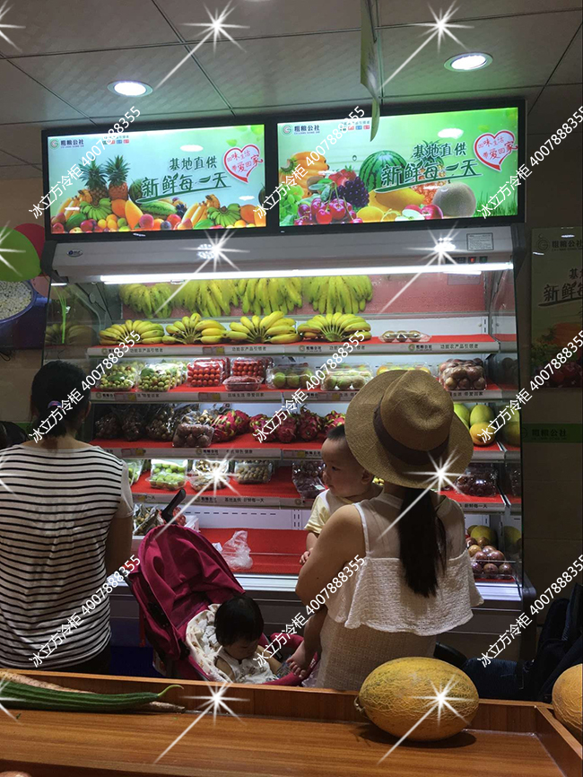 深圳风幕柜厂家-贺天颂雅苑粗粮公社开业大吉! 深圳风幕柜厂家,四米风幕柜,蔬菜风幕柜,水果风幕柜,风幕柜厂家 名称:四米老款生鲜风幕柜,两米新款水果风幕柜