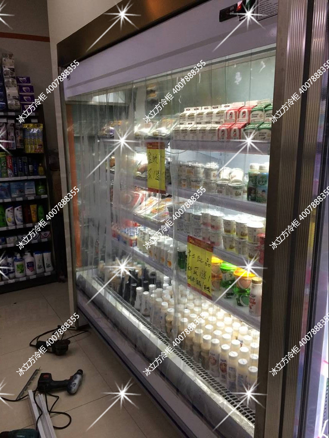 优宜一站连锁便利店牛奶柜卷帘改垂帘现场实拍效果图,效果棒棒的